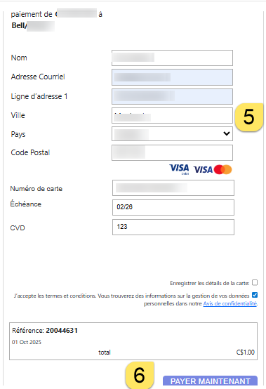 - Saisissez les informations relatives à votre carte de crédit dans le champ Inscrire le mode de paiement.